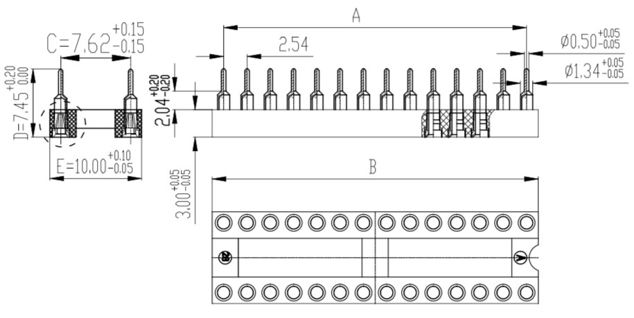 2.54mm PRC type IC socket