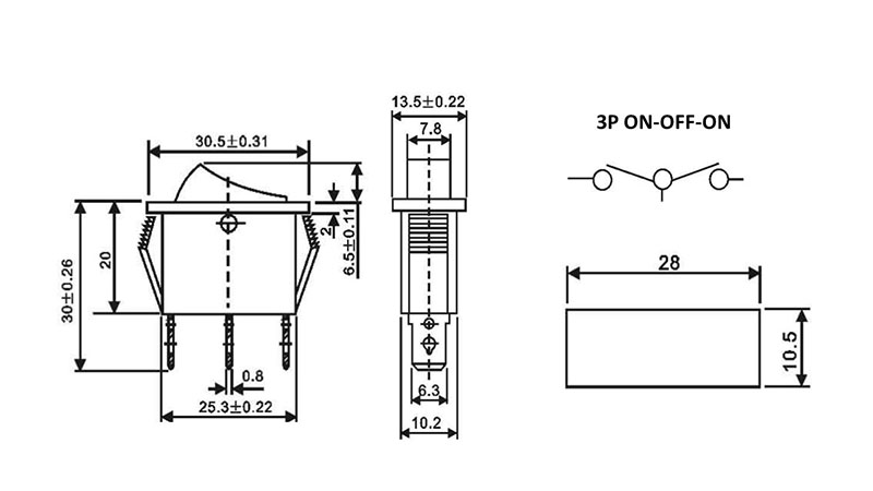KCD3-103 3 positions on-off-on 3pin SPDT rocker switch