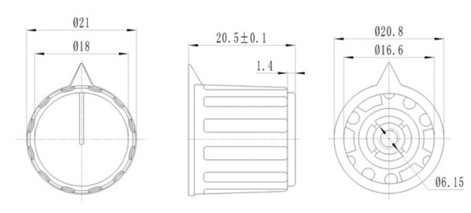 6mm potentiometer knob, size Φ20.7*20.6mm