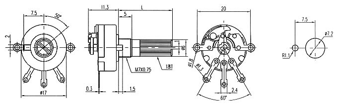 Φ17mm rotary potentiometer with switch